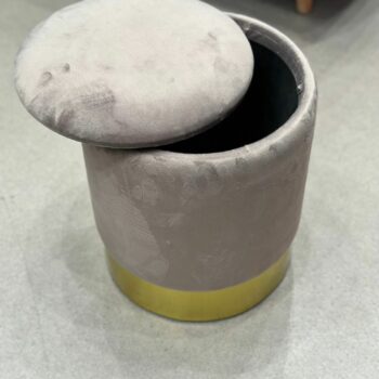 Pouf d’appoint en velours gris avec espace de rangement