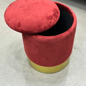 Pouf d’appoint en velours bordeaux avec espace de rangement