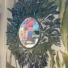 Miroir rond en métal décor de feuilles